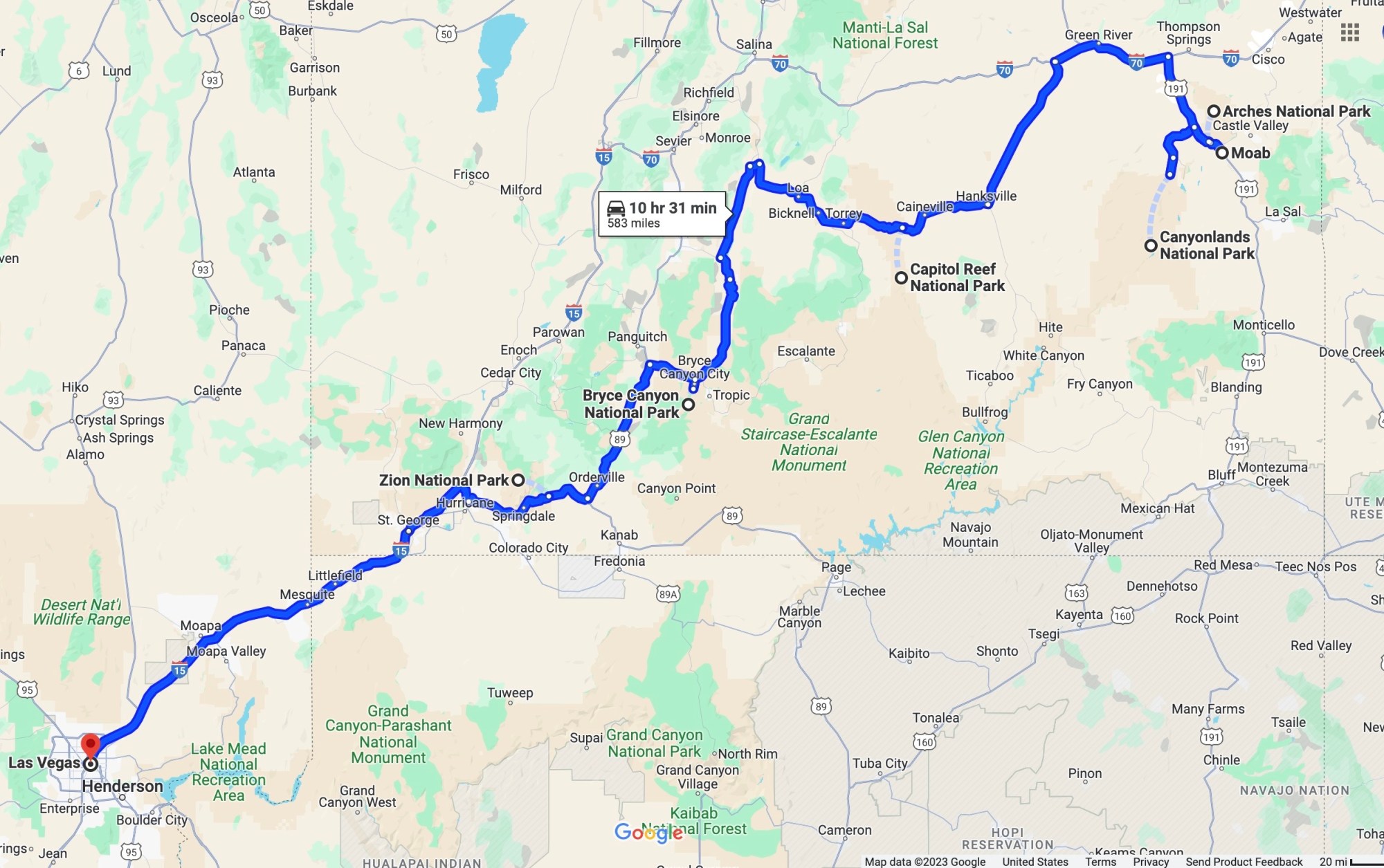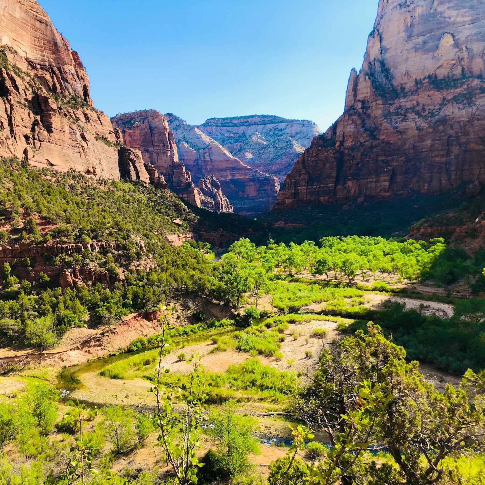 From there you’ll drive a little over an hour and a half to visit our favorite park of all… Zion National Park! This park covers an area of approximately 229 square miles and is famous for its spectacular rock formations, including towering sandstone cliffs, deep canyons, and unique rock formations such as the iconic “Checkerboard Mesa.” Zion is home to a variety of wildlife, including deer, mountain lions, bighorn sheep, and more. The park offers a variety of recreational opportunities, including hiking, camping, rock climbing, and scenic drives. The most famous hike is Angels Landing, which provides breathtaking views of the surrounding landscape.
