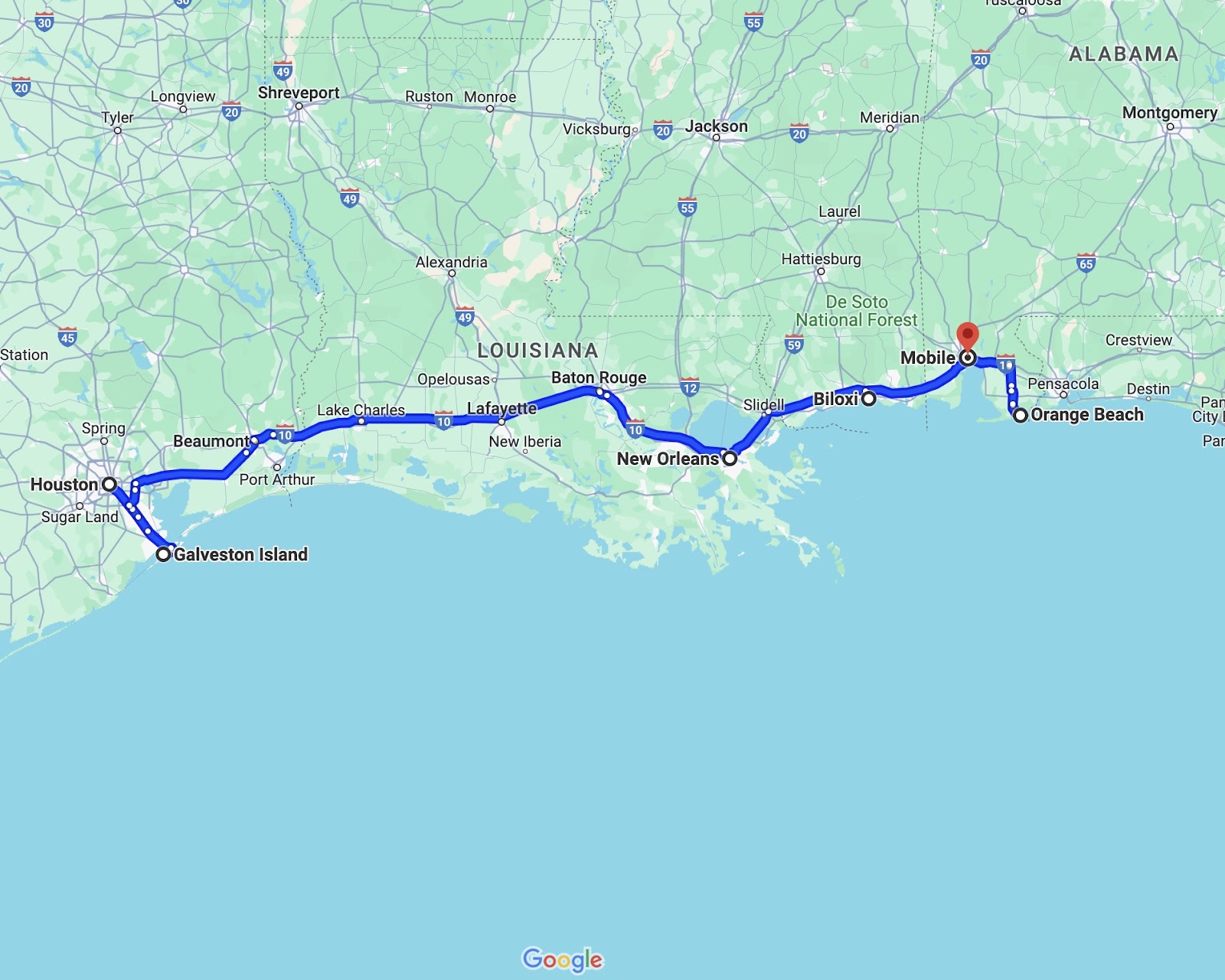 When looking at our map and seeing how Texas, Louisiana, Mississippi, and Alabama line up with each other, we decided we’d put all of these states together into one trip and stick to the gulf region. The nicest part of this is that there is minimal driving involved (compared to other trips we’ve made) and you’re still visiting 4 different states! So here’s the itinerary…