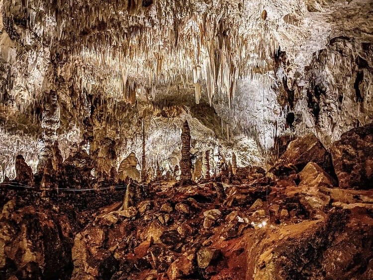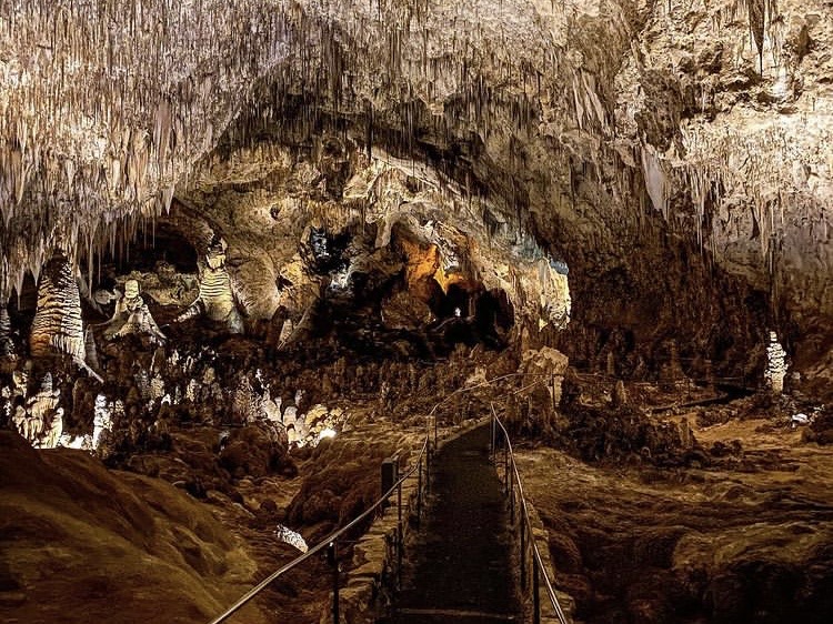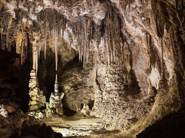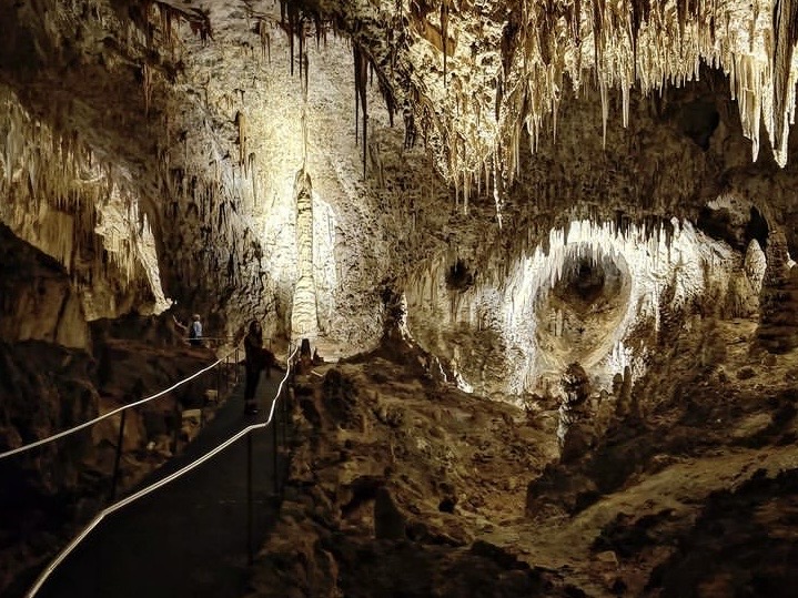 Let’s talk about Carlsbad Caverns first… it’s located at the southernmost edge of the state of New Mexico very close to the Texas state line. We flew into El Paso, Texas and it was just a two and a half hour drive from there. Upon arrival, we suggest you checkout the bookstore in the Visitor Center and rent their “audio guide” for just $5 each. This will really enhance your experience. You can listen to this tour as you walk through the cavern, stop-by-stop, listening to information about the cavern that is both interesting and educational. It’s available in English, Spanish, German, Japanese, and Mandarin Chinese (and there is even a children’s version available in English). Moving on to the cavern itself, if you’re physically able, we suggest walking and going in through the Natural Entrance. WARNING… this 1.25 mile trail is extremely steep and the switchbacks that drop down into the cavern descend 750 feet, which is the equivalent of walking up or down in a 75 story building. If you’re unable to do the hike down into the cave, there is an elevator that you can take down instead (use of the elevator is included in the price of the entry fee). Since the walk down into the cave is over a mile long (from its starting point), that alone can take an hour or so depending how much time you spend looking at things on the way down. You could easily spend half a day exploring the cavern so we’d recommend an early arrival time. While here, you’ll have the opportunity to see some really cool formations like Devil’s Spring, the Whale’s Mouth, and Iceberg Rock. The Big Room, the largest single cave chamber in the United States, is the highlight of the cavern.